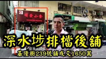 剛成交【深水埗排檔後面舖】第2067成交(堅) 感覺6分,深水埗基隆街239號舖 (近南昌街),This shop just SOLD 1650萬,建築約1000呎,闊約14呎,深約50呎,我去過,大大間,算平! 6分位。原叫價2380萬。 阿媽(李太及阿女Apple)由街邊檔做起,做了三十多年,養活三女一子,全人手包餃子 + 靚魚肉...