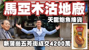 馬亞木沽地廠,天龍鮑魚接!第4331成交,市傳4200萬成交,感覺5分,天龍牌鮑魚新億集團4200萬買新蒲崗地廠 馬亞木持貨21年勁賺7倍。 (地廠門闊24呎,深約170呎,包括中間是電梯槽。建築7100呎,實用約5500呎) 繼本地老字號安記海味於4月份斥1...