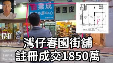 今日註冊,第5306成交,註冊成交港幣1,850萬,灣仔春園街1-11號春暉大廈地下2A號舖,建築面積約550呎,實用面積約360呎,門闊約15呎,深約24呎,註冊成交港幣1,850萬,租客業成鋼閘(售後租回)+鴻盛皮鞋,租金(業成鋼閘)港幣$45,000元, 租期約2年 / 鴻盛皮鞋港幣$45,000至2027年11月,樓齡41年。...