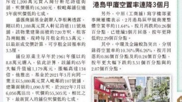 核心區商舖價格自高位大跌,有商舖基金相隔兩年,趁機再次入市撈貨,斥近1,200萬元買入灣仔軒尼詩道街舖,呎價僅約16,500元,較毗鄰舖位逾3年前呎價低約七成盛滙商舖基金創辦人李根興透露,剛以約1,188萬元買入軒尼詩道111號地舖,該物業建築面積約720方呎,租客為兩餸飯,現時每月租金約3.5萬元,以最新成交價計算,可享租金回報率約3...
