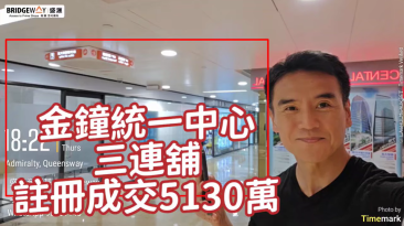 剛註冊,金鐘統一中心2樓7、8、9號舖,建築面積3433呎,剛成交5130萬。 平均呎價1.5萬。三個不同的租客,位置比較僻, 人流唔多,我都 surprise 賣到咁靚價。業主已持貨多年。