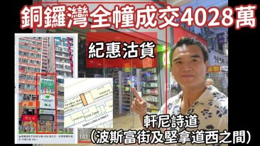 紀惠沽銅鑼灣全幢!第5170成交,銅鑼灣軒尼詩道452號全幢(堅拿道西及波斯富街之間),市傳成交4028萬(未註冊)。...