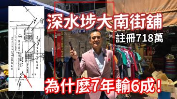 今日註冊,第5175成交,註冊成交港幣718萬,感覺5分,深水埗大南街274號地下,建築面積約1000呎,實用面積約900呎 (連大天井),門闊約15呎,深約60呎,註冊成交港幣718萬,租客吉舖,樓齡65年。 原業主於2018年8月以港幣1750萬買入,持貨7年,跌幅58...