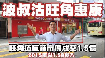 波叔沽旺角惠康巨舖!第4121成交,旺角道惠康剛市傳成交1.5億,感覺7.5分。中原做,市傳內地客買!宏安2015年8月以1.58億沽給波叔,賣公司,無註冊。宏安是2007年以5800萬註冊買入物業。市傳買家是盧海強,但未能作實。 旺角旺角道93...