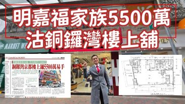 今日新聞:第5253成交,市傳成交港幣5,500萬,感覺6分,銅鑼灣舖5500萬沽,回報近5厘。明嘉福家族續套現,京都廣場1年售3舖。 近期核心區舖位買賣增,銅鑼灣京都廣場1樓舖位,以5,500萬元沽出,新買家可享近5厘回報。 資料顯示,銅鑼灣駱克道京都廣場1樓舖位易手,物業面積約4,846平方呎,以5,500萬元沽出,呎價約1...