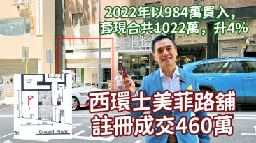 今日註冊,第3521成交,註冊成交460萬,西環士美菲路12R號慧華閣地下2號舖註冊成交460萬。建築747呎,實用578呎。闊約18呎,深約30呎,現雜貨店。 原業主於2022年10月以984萬買入1及2號舖。現合共套現562萬及460萬 = 1022萬。 成交比較:1號舖較細,The Key Coffee...