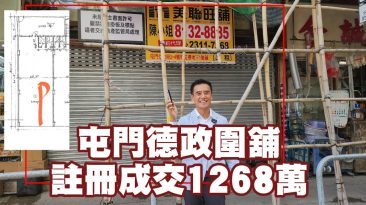 第3517成交,(信報)屯門地舖守15年仍輸112萬 民生區舖位持續出現損手買賣,屯門德政圍鄰近港鐵站的一個地舖,以1268萬元易手,原業主持貨逾15年,賬面仍要虧蝕112萬元離場。 資料顯示,屯門德政圍8號年旺樓地下1號舖,建築面積約985方呎,鄰近屯門港鐵站及大型屋苑瓏門,近期以1268萬元售出,呎價約1.29萬元。舖位曾以每月9...