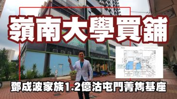 今日新聞:第3519成交,屯門菁雋基座4萬呎舖,嶺大1.2億購入 (經濟日報) 大學持續購入物業,鄧成波家族旗下屯門菁雋基座4萬平方呎商舖,早前淪為銀主盤,新近以1.2億元沽出,買家為嶺南大學,料作教學之用。 (Note: 鄧成波家族於2017年以12億向俊和買入全幢住宅項目) 呎價僅約3千元 料作教學用途...