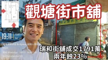 第5132成交,註冊1791萬,原業主2023年6月以2320萬買入,兩年蝕23%。觀塘瑞和街92至112號地下T(112)號舖,仁富大廈,建築544呎,舖闊約11呎半,深約30呎,實用約300呎,散貨場,舊租60588至2024年8月31日。 原業主於2023年6月以2320萬買入。再上手業主1972年以11...