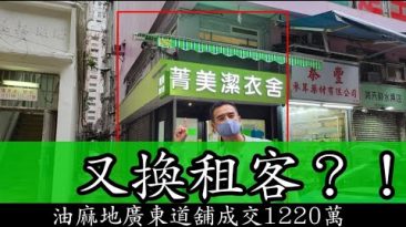 第3637,市傳成交約1300萬,感覺4分,大角咀中匯街48-58號中耀樓地下7號舖,建築面積約405呎,門闊約11呎,舖深約33呎,租客雋居裝修工程,租金$19,000,成交約1300萬,回報率約1.7%。我估無咁高,應成交約1000-1100萬。舖向角祥街。 原業主於2014年11月以650萬買入。 簽約日期約是2022年8月。...