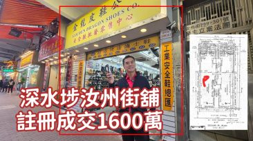 今日註冊,第5260成交,註冊成交港幣1,600萬,深感覺6.5分,水埗汝州街299-301號地下299號舖,建築面積約900呎,實用面積約762呎,門闊約14呎,深約60呎,註冊成交港幣1,600萬,租客金龍皮鞋,樓齡60年。 原業主於1999年5月以港幣369萬買入,持貨26年,升幅333.6%。最新簽約日期是2025年9月17日。...