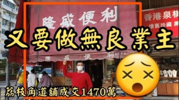 深水埗基隆號255號地舖, 蕃茄師兄,租金42500至2021年8月(48875至31/3/2023),回報2.8%。建築面積1164呎,剛沽出1800萬。又係波叔,兩舖今日套現3600萬。舖市「大陽春」! ??? 原業主(波叔)2016年12月以1606.8萬買入。 這間舖位於排檔後面, 老實說位置好差。勝在大間。...