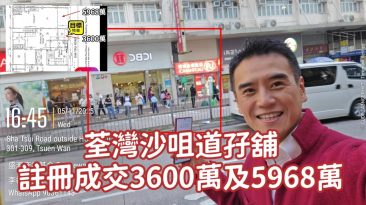 今日註冊,第5281及5282成交,荃灣沙咀道297-313號眾安大廈地下3B及4號舖,感覺6分 註冊成交3600萬是3B舖, 租客UA 財務 (全世界第三好財務公司,因為第一是康業,第二是KCash 🤩)。建築面積地舖1368呎,天井682呎,合共2050呎,租金13.5萬至2026年10月31日,回報4...