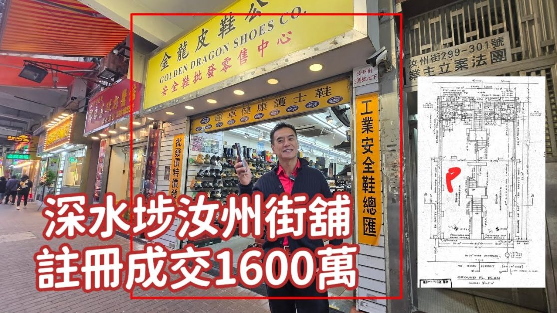 今日註冊,第5260成交,註冊成交港幣1,600萬,深感覺6.5分,深水埗汝州街299-301號地下299號舖,建築面積約900呎