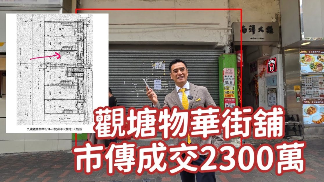 第5492成交,市傳剛成交約2300萬。感覺7分,觀塘物華街31-41號南洋大廈地下C號舖(不包括閣樓),地舖建築面積:約845呎,交吉交易 (前華潤堂)