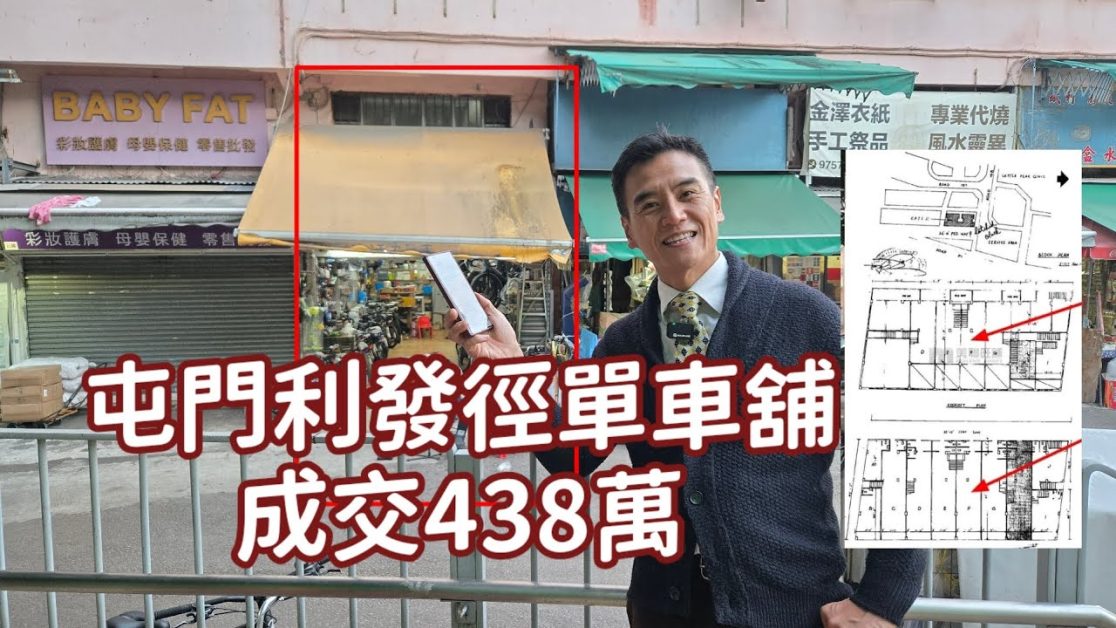 第5339成交,剛註冊成交港幣438萬,感覺6分,屯門利發徑2號億利樓地下F號舖連入則閣,建築面積約900呎
