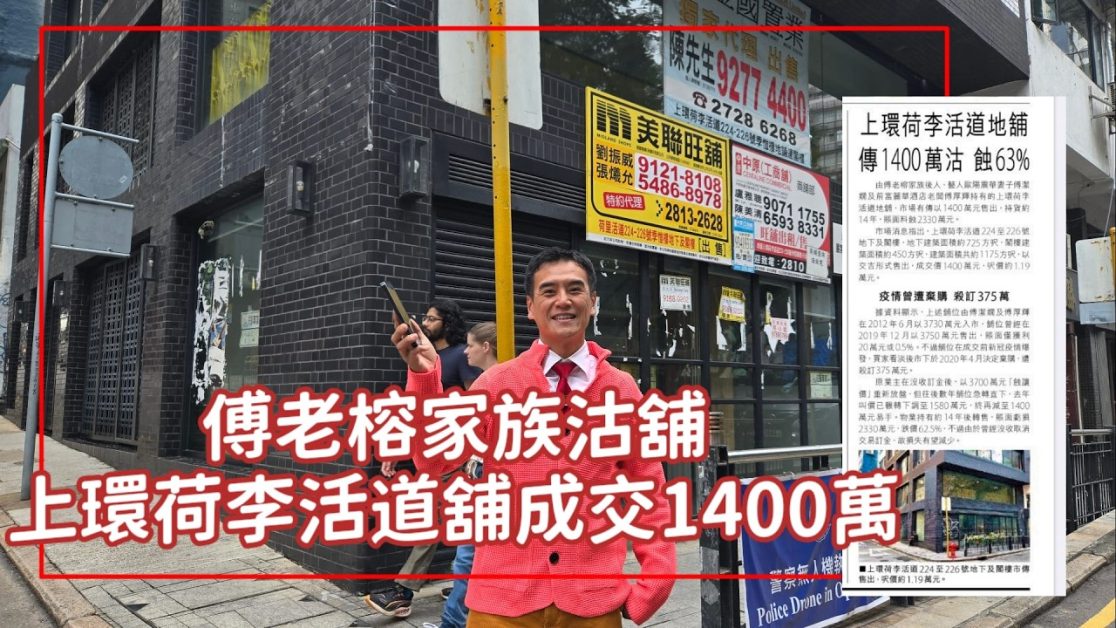(字幕) 今日新聞:第5416成交,上環荷李活道地舖傳1400萬沽蝕63% (市傳,信報)感覺6.5分