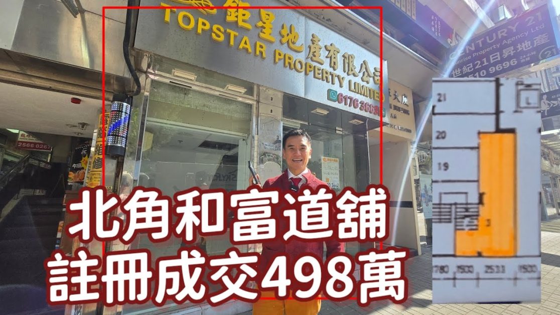 第5449成交,註冊成交港幣498萬,感覺7分,北角和富道20-36號明暉大廈地下3號舖,建築面積約376呎,實用面積約350呎